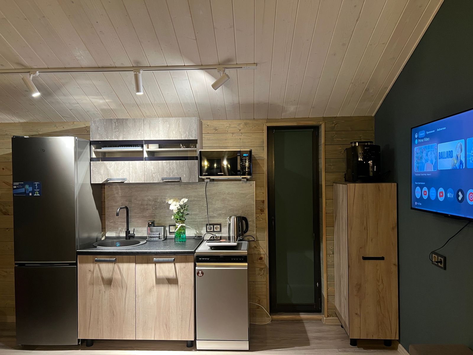 Техника: Смарт-телевизор, зонированное освещение, питьевая вода (19 л).